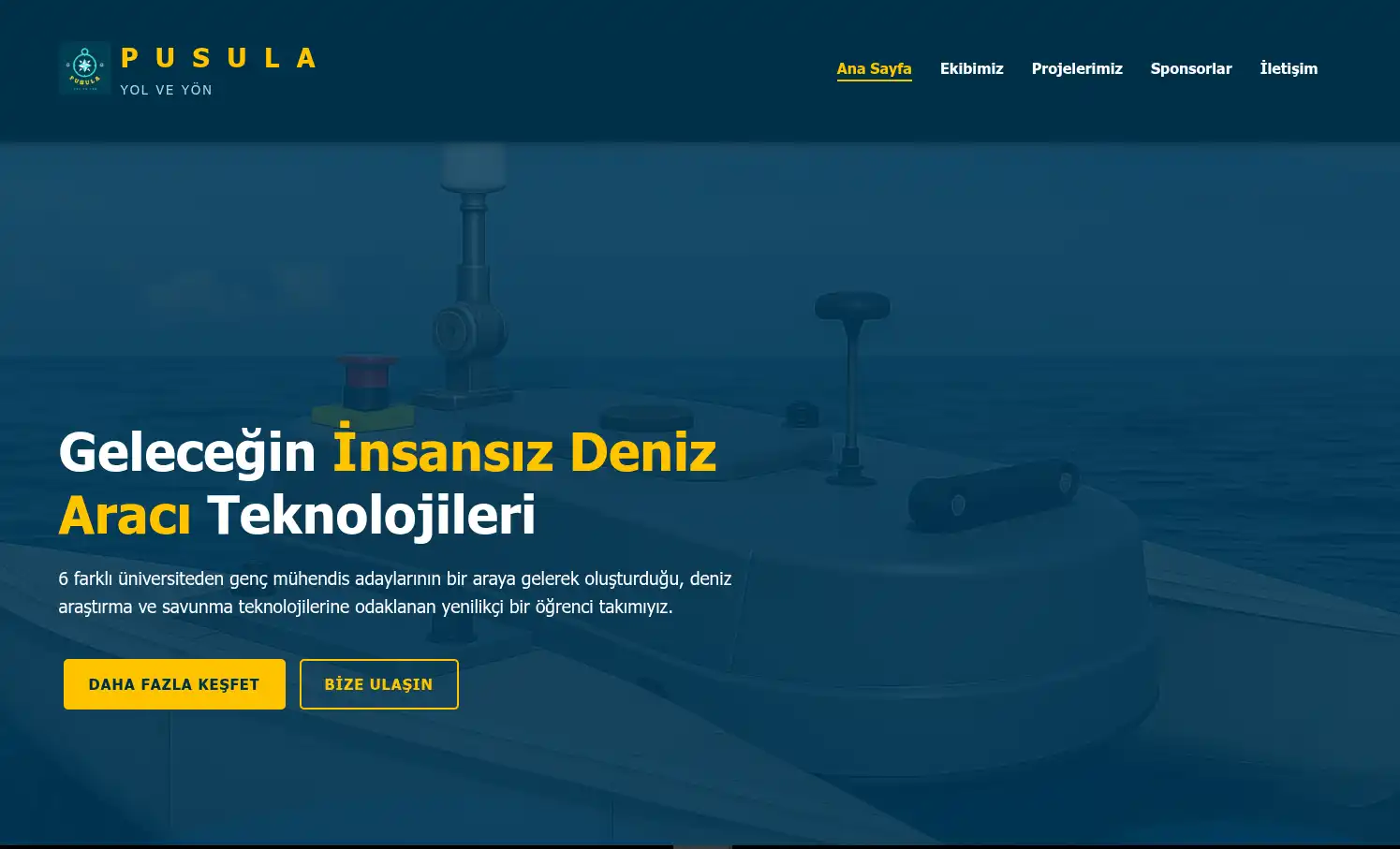 Website for PUSULA USV, showcasing our autonomous marine vehicle project and team information.